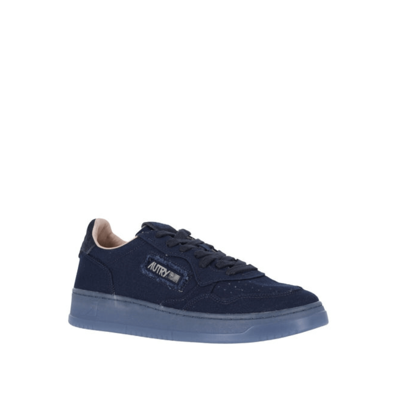 נעלי סניקרס מבית AUTRY, בצבע כחול נמוכות, עם לוגו סיליקון של Autry, ולשונית עקב מזמש עם לוגו מוטבע.