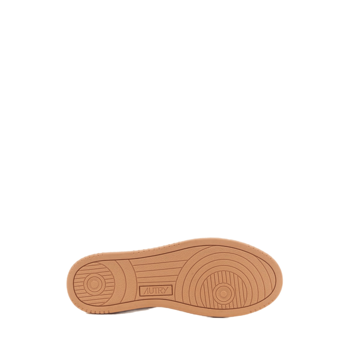 נעלי סניקרס מבית AUTRY, בצבע לבן כתום נמוכות מעור, עם לוגו סיליקון של Autry, ולשונית עקב עם לוגו מוטבע.