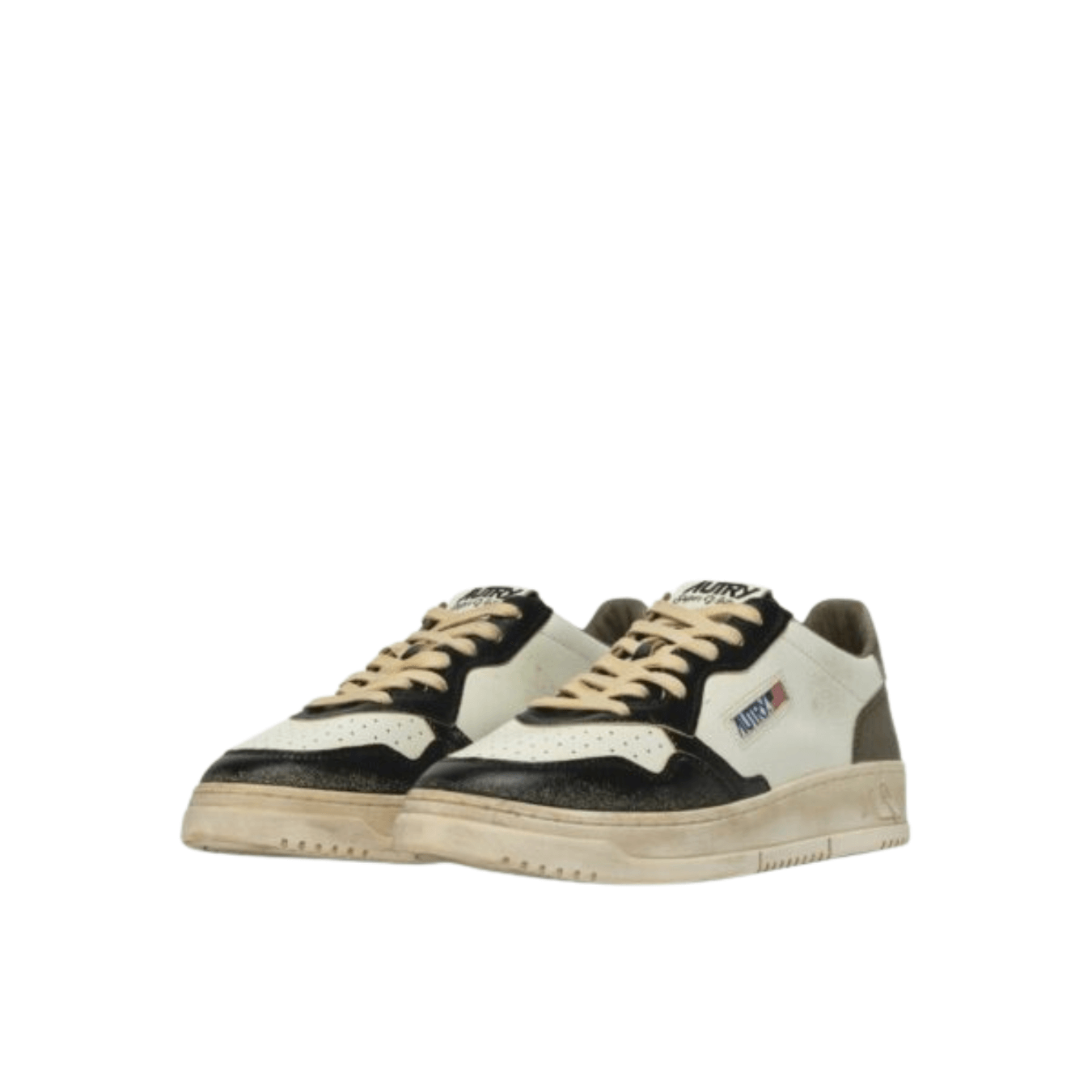 נעל אוטרי – AUTRY SUPER VINTAGE MEDALIST LOW SNEAKERS IN WHITE MILITARY GREEN AND BROWN LEATHER
