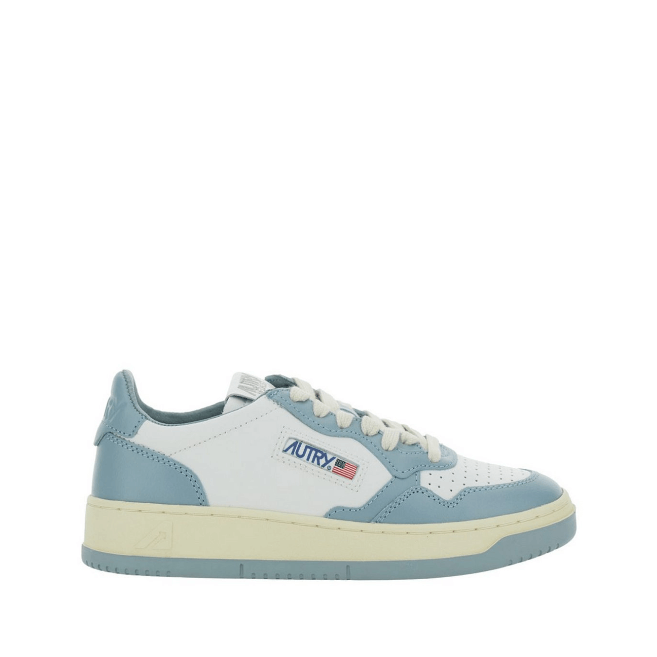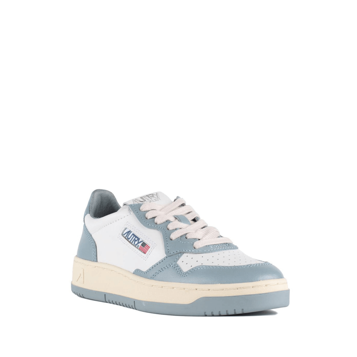 נעלי סניקרס מבית AUTRY, בצבע לבן תכלת נמוכות מעור,  עם לוגו סיליקון של Autry, ולשונית עקב עם לוגו מוטבע..