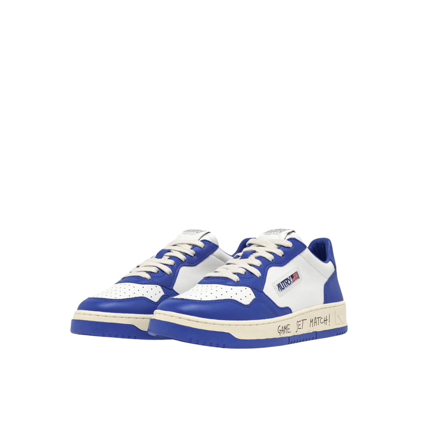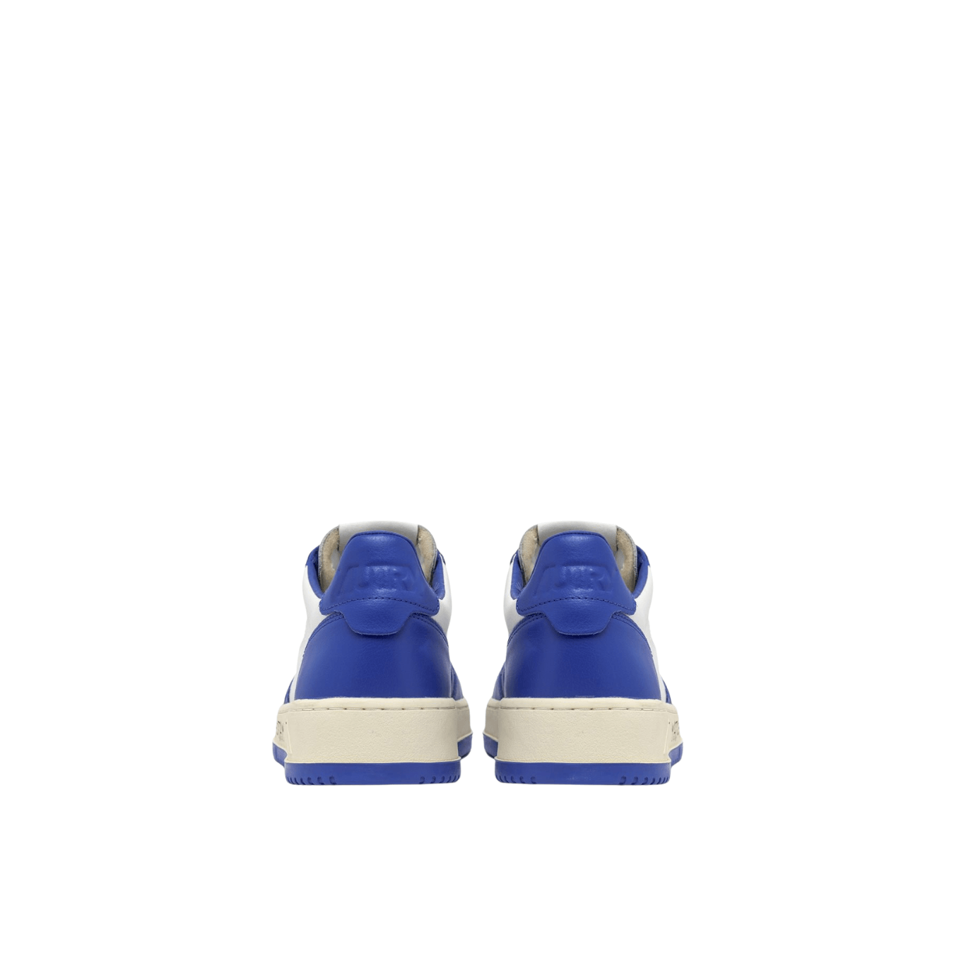 נעלי סניקרס מבית AUTRY, בצבע לבן כחול נמוכות מעור, עם לוגו סיליקון של Autry, ולשונית עקב עם לוגו מוטבע.