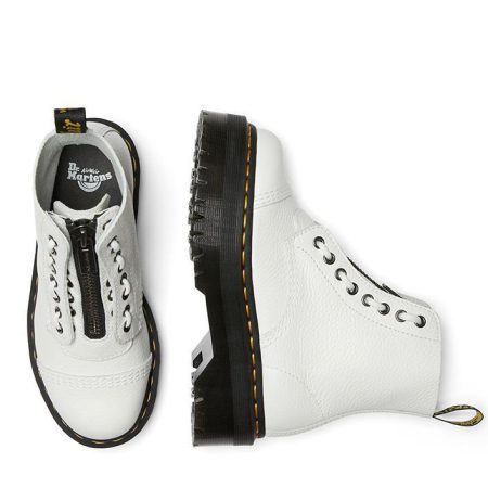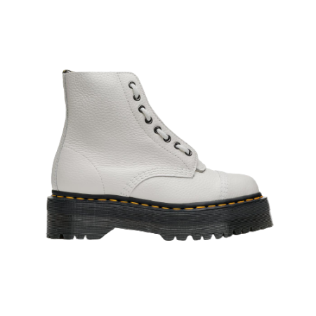 מגף הפלטפורמה Pascal עם 8 עיניים עם עיבוד סוליית ה-Quad המיוחדת של Dr. Martens – עם בנייה חדשנית בשני חלקים. סוליית EVA קלת משקל וסוליית PVC חיצונית עם חריצים עמוקים. יוצר בעור ברנדו קלאסי המציג מראה וינטג' הנשמר לאורך זמן.