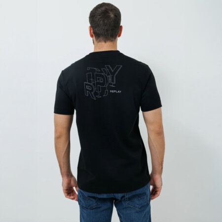 REPLAY – חולצת טי עם הדפס בגב בצבע שחור לגברים
